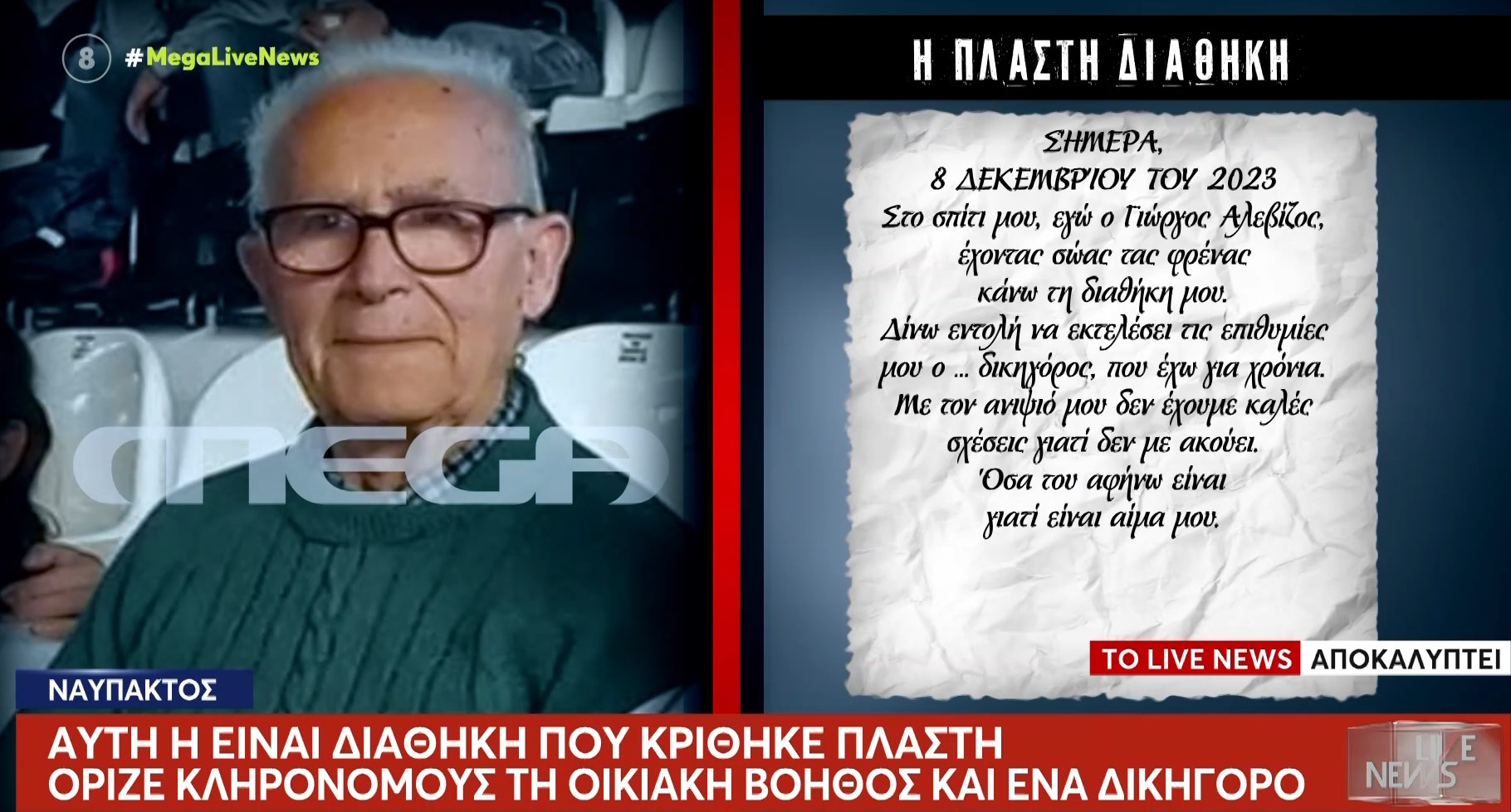Ναύπακτος: Αποκαλύψεις για την πλαστή διαθήκη του 84χρονου και τους κληρονόμους της