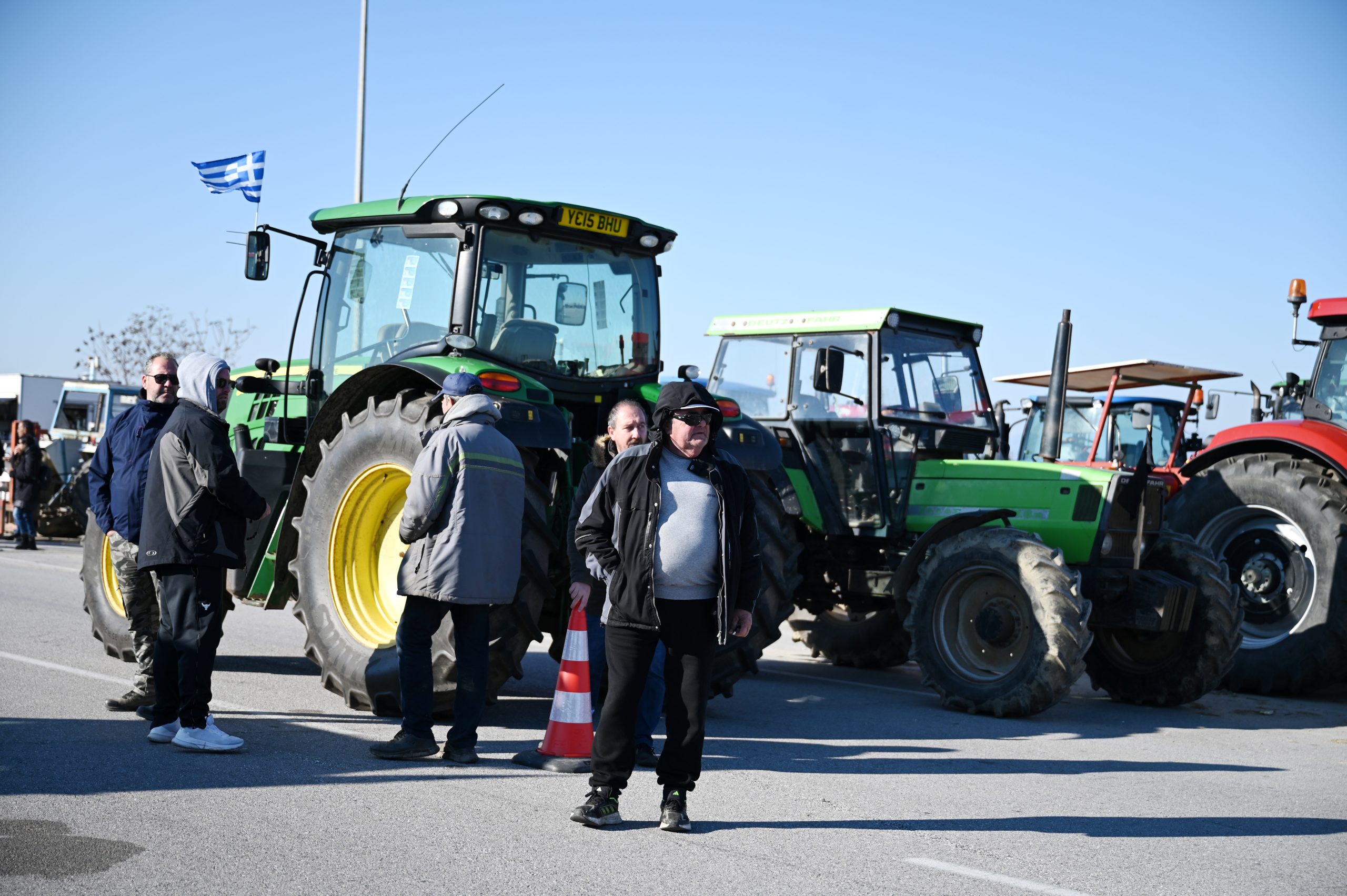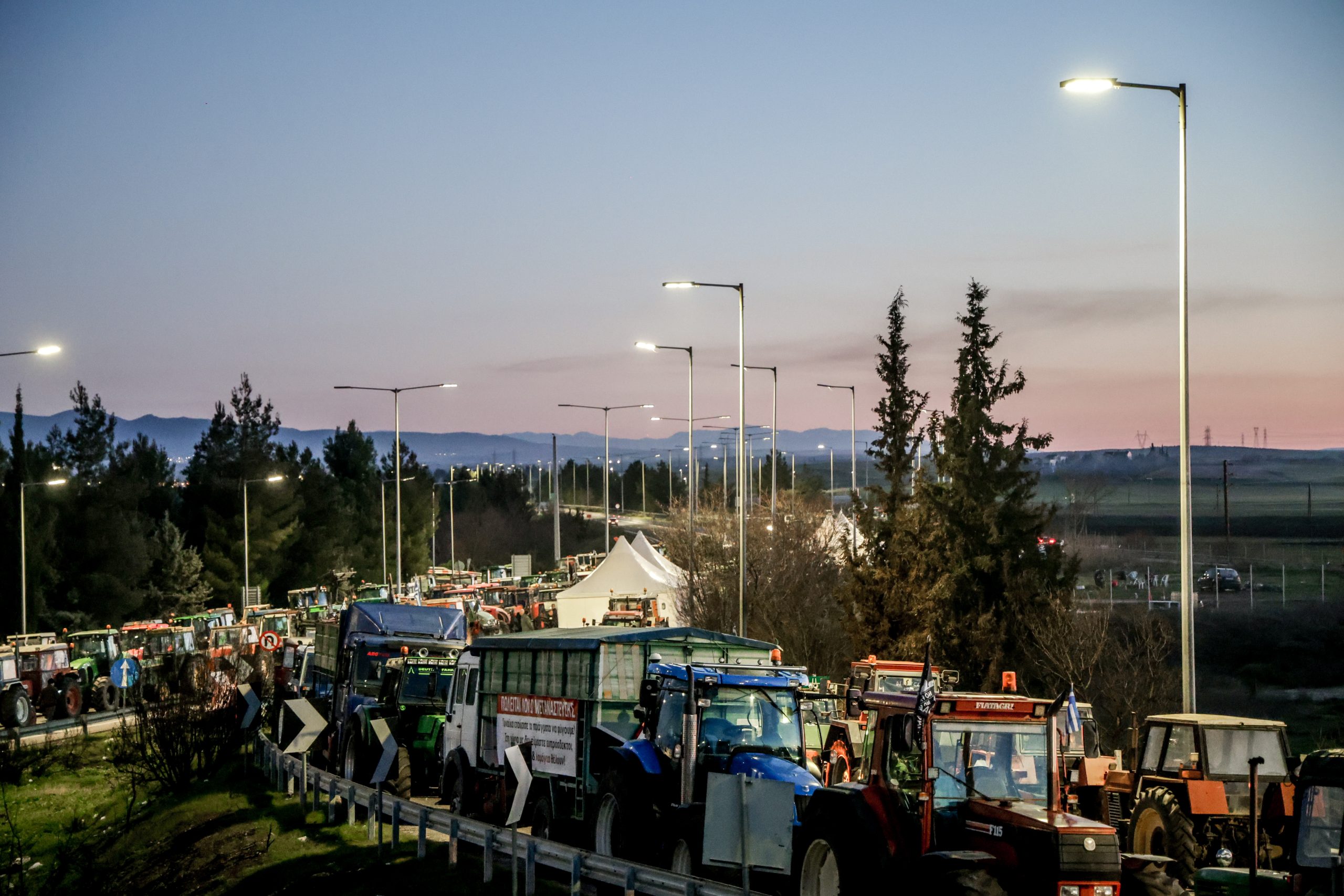 Στην άκρη του δρόμου έχουν παρατάξει τα τρακτέρ τους οι αγρότες, διευκολύνοντας την κυκλοφορία ενόψει της συνάντησης που έχει προγραμματιστεί τη Δευτέρα