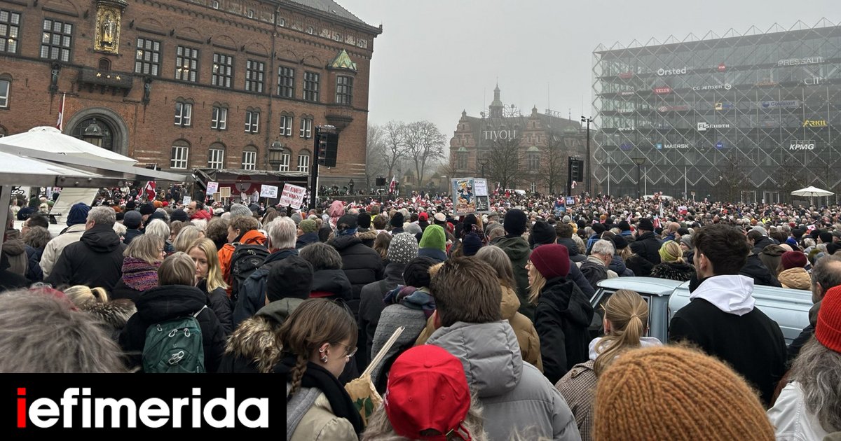 Χιλιάδες διαδηλωτές συγκεντρώθηκαν σήμερα στην πλατεία του δημαρχείου της Κοπεγχάγης για να εκφράσουν την αντίθεσή τους στις εδαφικές φιλοδοξίες των Ηνωμένων Πολιτειών στη Γροιλανδία.