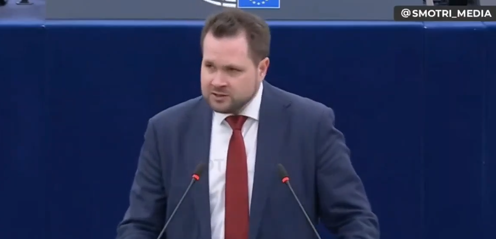 να αντιδρά έντονα από το βήμα του Στρασβούργου...
