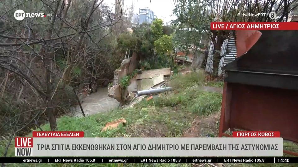 Τρία σπίτια στον Άγιο Δημήτριο, δύο στην οδό Βαλτετσίου και ένα στην οδό Τεπελενίου, εκκενώθηκαν από τις Αρχές, ως επικίνδυνα λόγω της κακοκαιρίας.Σε ένα από αυτά, το οποίο είναι ουσιαστικά χτισμένο πάνω στο ρέμα της Πικροδάφνης, η αυλή έχει ήδη υποστεί καθίζηση λόγω της κακοκαιρίας και πλέον είναι εξαιρετικά επικίνδυνο καθώς η κακοκαιρία αναμένεται να επιδεινωθεί τις επόμενες