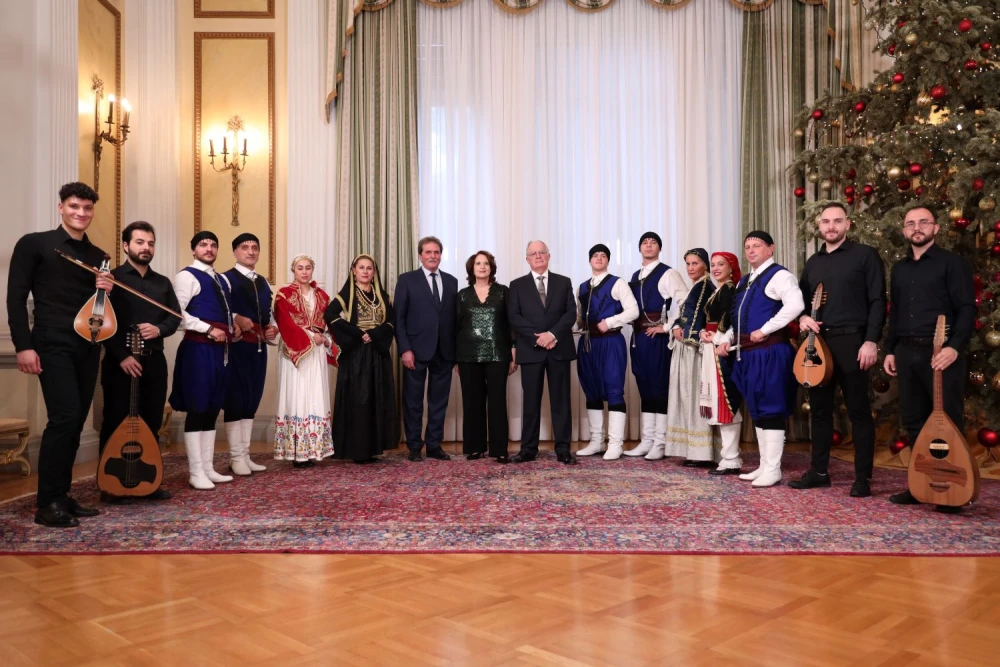 O Κωνσταντίνος Τασούλας υποδέχθηκε στο Προεδρικό Μέγαρο τη Μπάντα των Ενόπλων Δυνάμεων, η οποία έψαλε τα πρωτοχρονιάτικα κάλαντα.