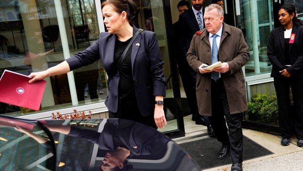 Ο υπουργός Εξωτερικών της Δανίας Λαρς Λόκε Ράσμουσεν και η Γροιλανδή ομόλογός του Βίβιαν Μότζφελντ αποχώρησαν από τον Λευκό Οίκο λίγο πριν από τις 12 το