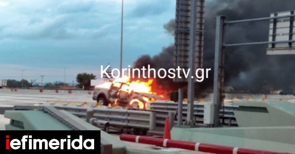 Σοκαριστικές στιγμές εκτυλίχθηκαν σήμερα στην Εθνική Οδό Αθηνών – Κορίνθου, όταν ένα αγροτικό όχημα τυλίχθηκε ξαφνικά στις φλόγες στον σταθμό διοδίων Καλαμακίου.