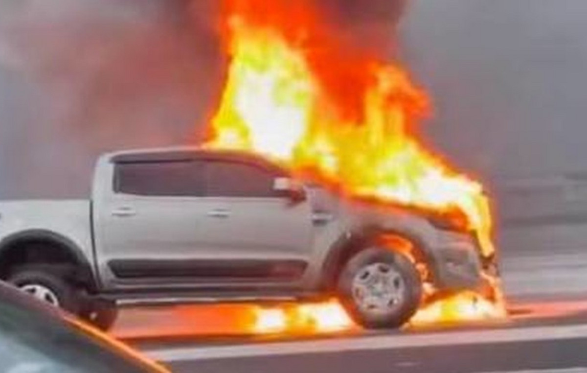 Αγροτικό όχημα τυλίχθηκε στις φλόγες στα διόδια Καλαμακίου στην Αθηνών – Κορίνθου.