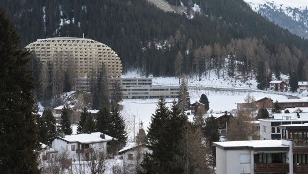 Οι σύνεδροι του Παγκόσμιου Οικονομικού Φόρουμ συγκεντρώθηκαν νωρίτερα στην κεντρική αίθουσα του συνεδριακού κέντρου, προσπαθώντας