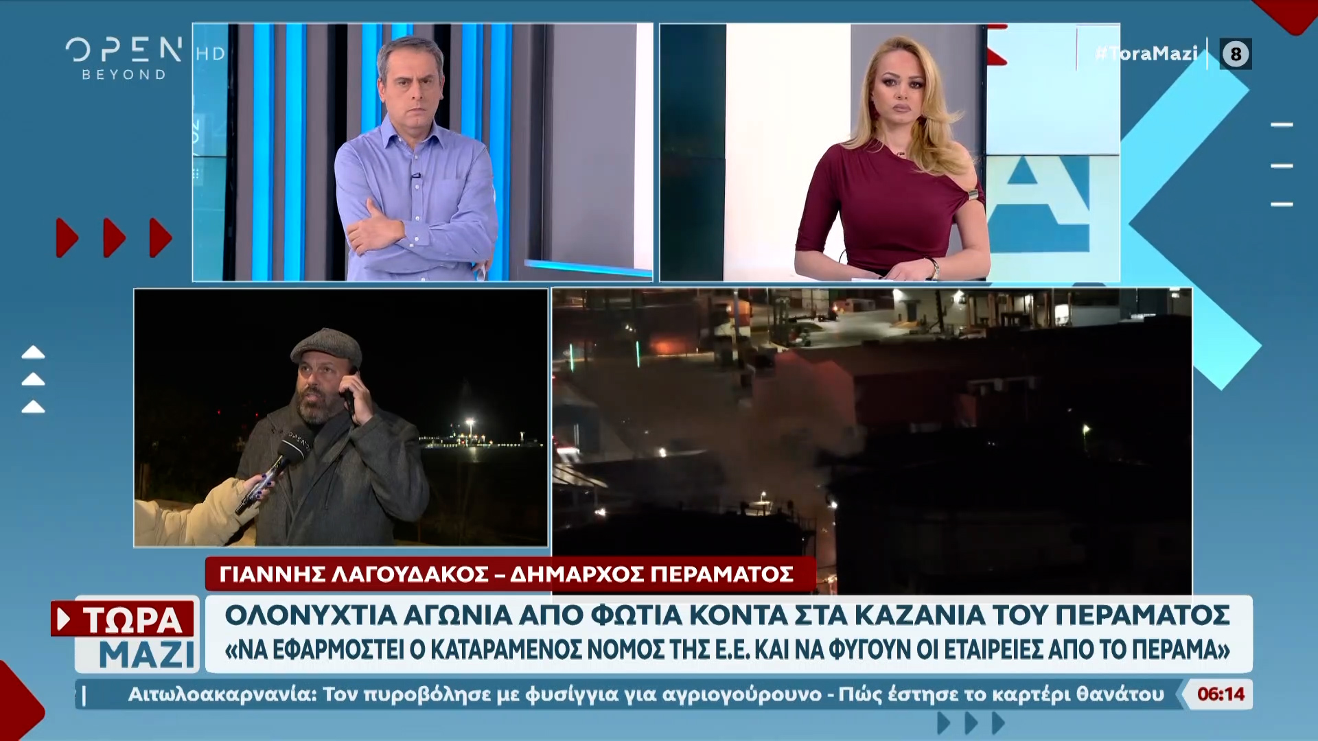 «Φλόγες 20 μέτρων υψώνονταν εκατέρωθεν της κεντρικής και μοναδικής λεωφόρου του Περάματος», είπε ο δήμαρχος Γιάννης Λαγουδάκος ο οποίος μίλησε στο ΕΡΤnews