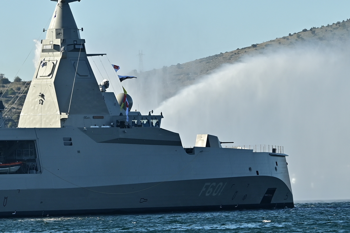 Με φόντο τον Ναύσταθμο Σαλαμίνας και με έντονη τη σκιά της ναυτικής ιστορίας της χώρας, η άφιξη της πρώτης ελληνικής φρεγάτας τύπου Belharra