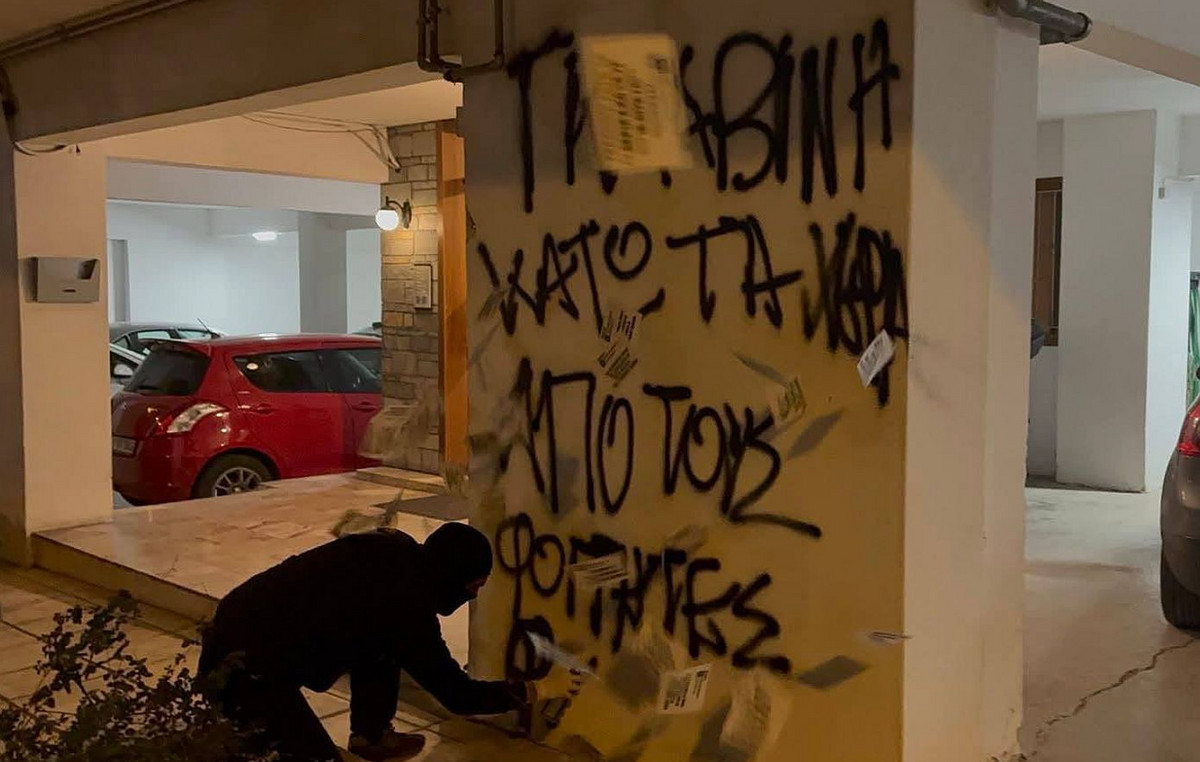 Παρέμβαση στο σπίτι του κοσμήτορα Νομικής του ΑΠΘ, Παναγιώτη Γκλαβίνη, στη Θεσσαλονίκη, εξαπέλυσαν μέλη του Ρουβίκωνα.