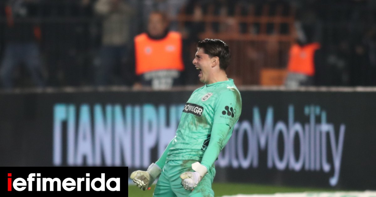 Ο 21χρονος τερματοφύλακας, στο ντεμπούτο του με τη φανέλα του ΠΑΟΚ, απέκρουσε το πέναλτι – τελευταίο της ψυχοφθόρας διαδικασίας – του Θανάση Καραμάνη,