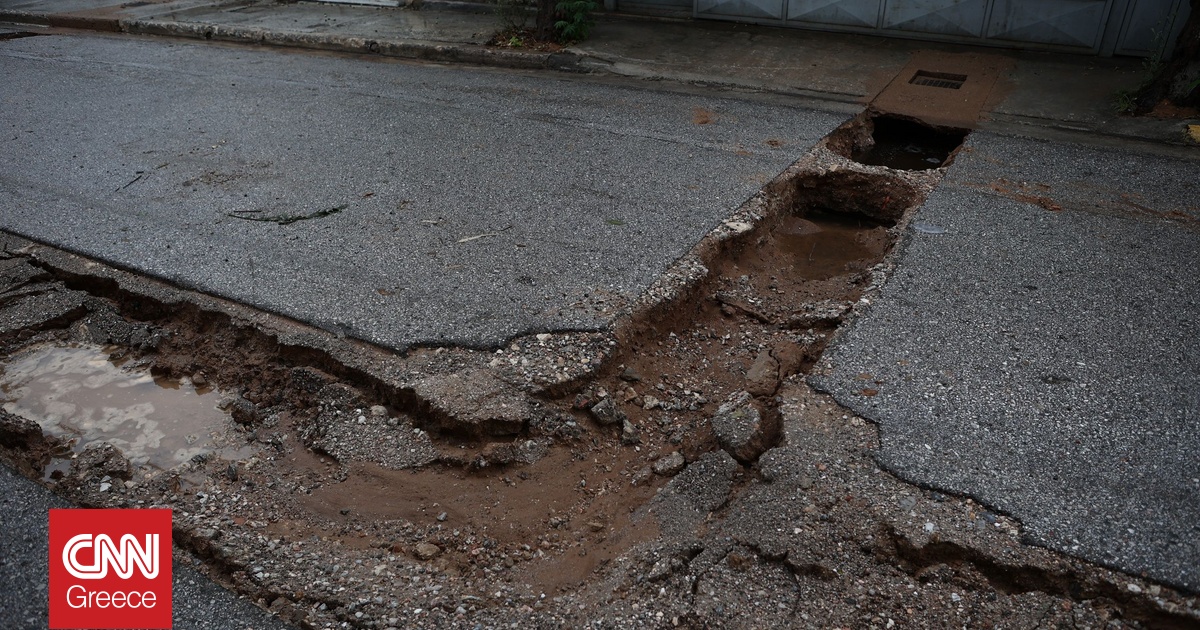 Καθίζηση σημειώθηκε στην Οδό Ιάσονος στην περιοχή του Πειραιά, καθώς ξέσπασαν πάλι καταιγίδες στην Αττική.