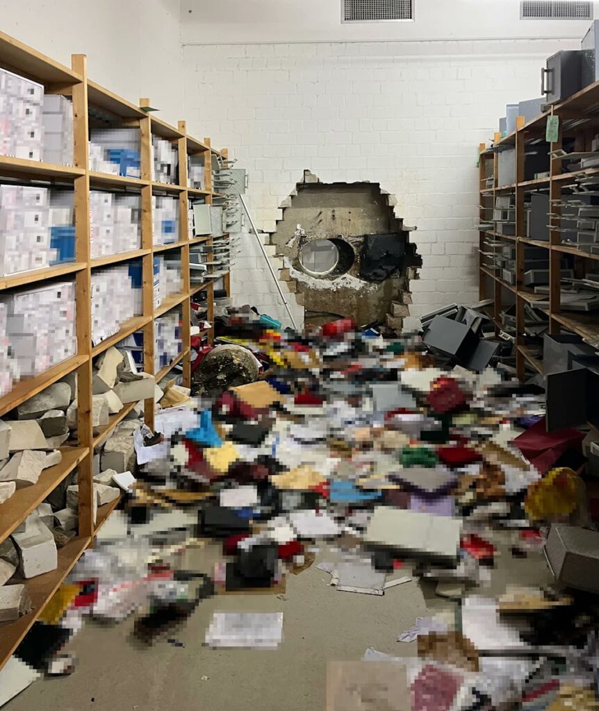 H διάρρηξη έγινε μέσω παρακείμενου χώρου στάθμευσης - Η διαδρομή οδηγούσε μέσα από πολλές πόρτες σε δωμάτιο φύλαξης αρχείου όπου ανοίχτηκε τρύπα στον τοίχο
