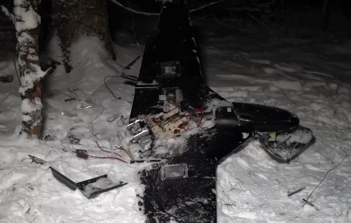 Στο βίντεο φαίνονται τα συντρίμμια ενός drone στο χιόνι.
