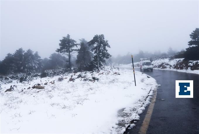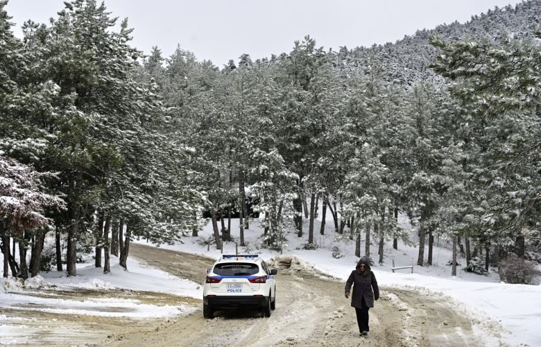 Στα λευκά έχουν ντυθεί από το πρωί, τα ορεινά της κεντρικής Εύβοιας, αλλά και η κορυφή της Πάρνηθας στην Αττική, ενώ χιονίζει και στην Ιπποκράτειο Πολιτεία