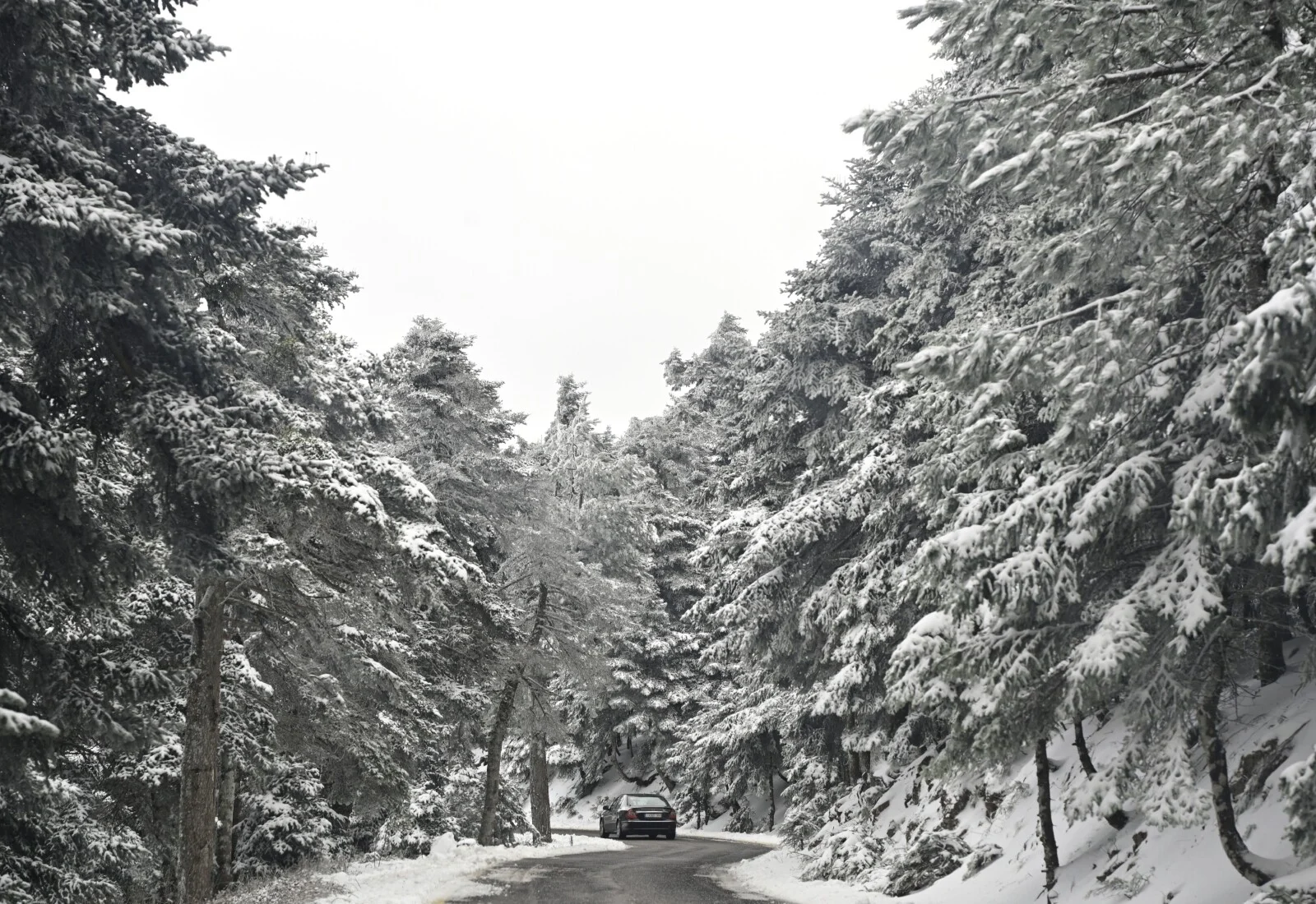 Στα λευκά έχει ντυθεί η Πάρνηθα από τα 1000 μέτρα και πάνω με την Τροχαία να κλείνει τον δρόμο
