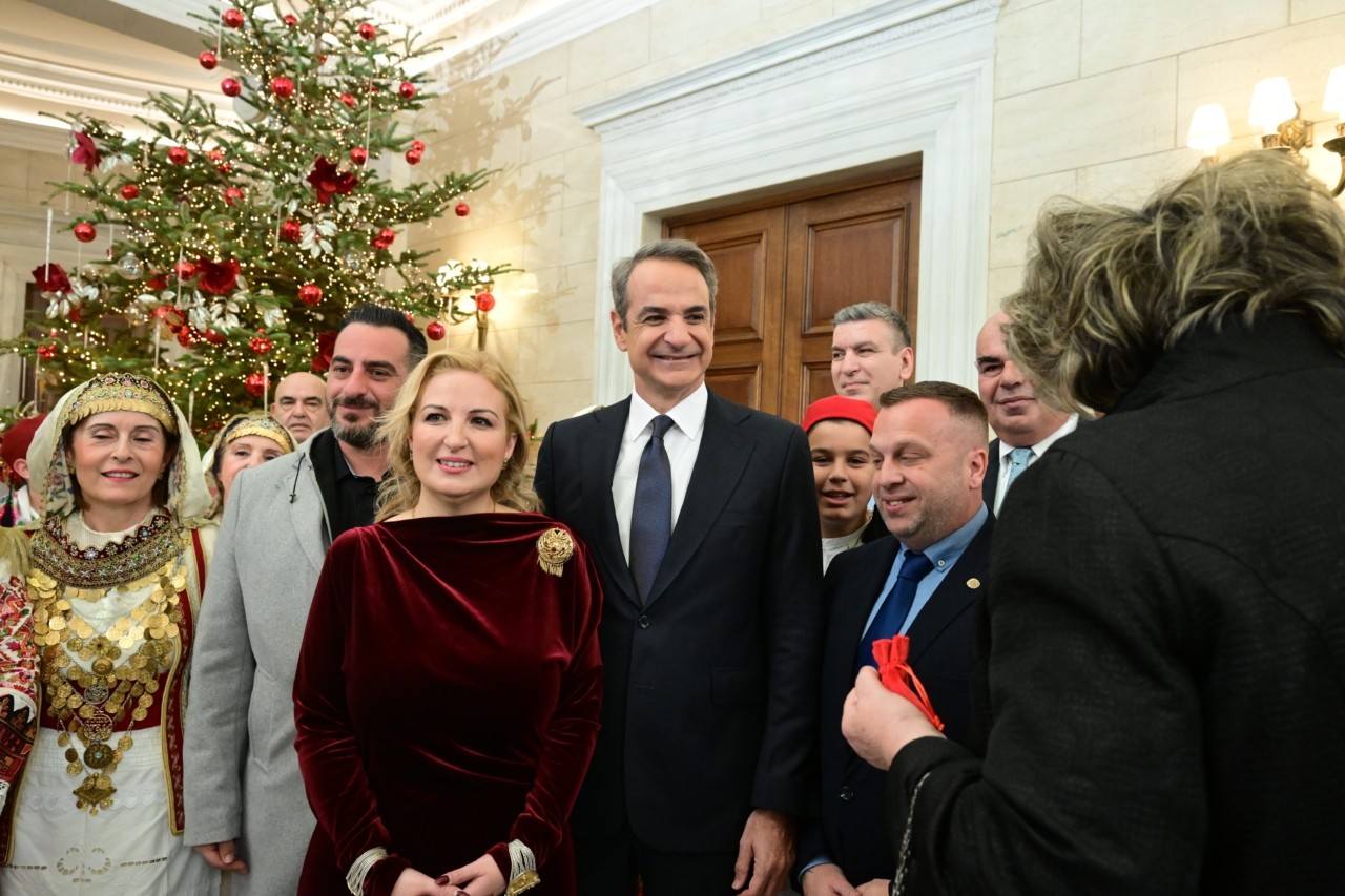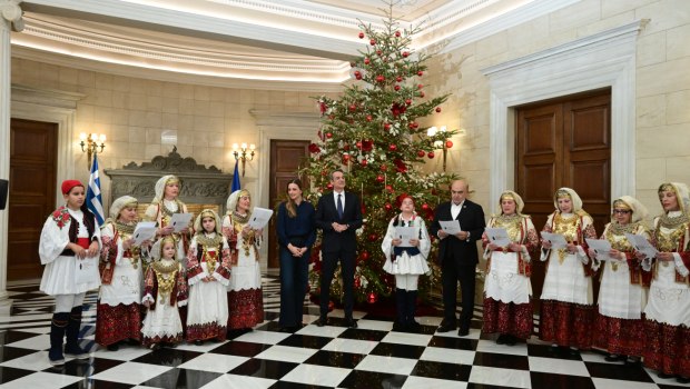 Τα κάλαντα της Πρωτοχρονιάς άκουσε στο Μέγαρο Μαξίμου ο Πρωθυπουργός, Κυριάκος Μητσοτάκης, από την Ένωση Λιοσιωτών Ιλίου.
