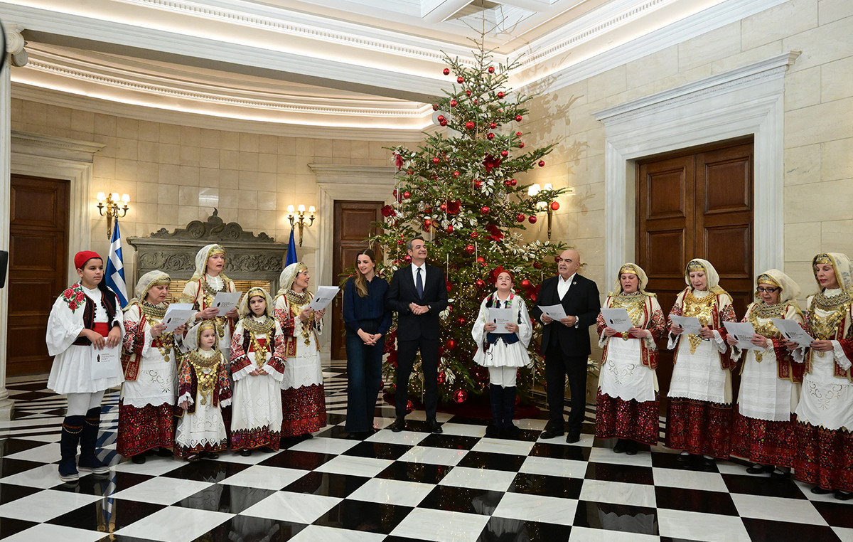 Στο εορταστικό κλίμα της παραμονής της Πρωτοχρονιάς, τα κάλαντα άκουσε στο Μέγαρο Μαξίμου ο πρωθυπουργός Κυριάκος Μητσοτάκης, που υποδέχτηκε μέλη της