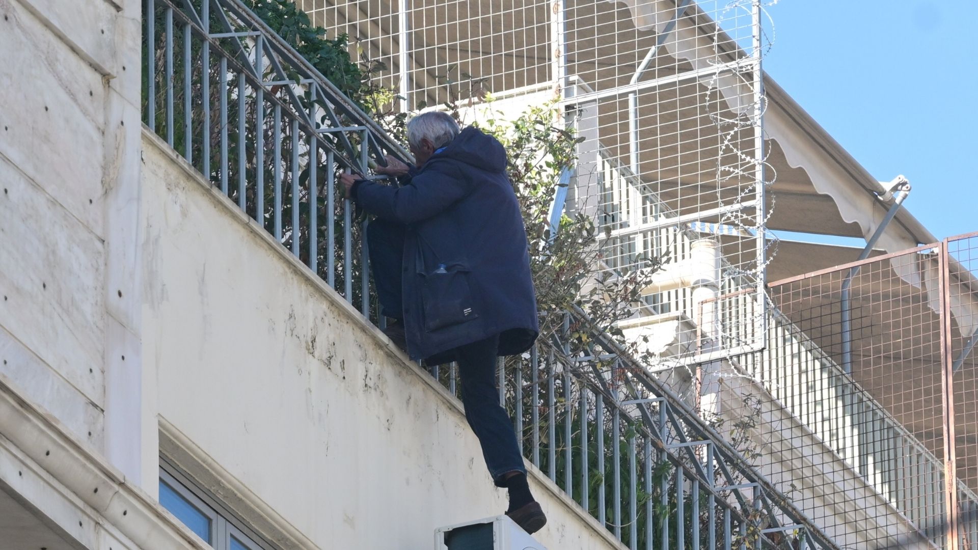 Νωρίτερα, είχε βγει στα κάγκελα της ταράτσας επί της οδού Σωκράτους 57 στην Ομόνοια, όπου στεγάζεται η Πολεοδομία, διαμαρτυρόμενος για απόφασή της να