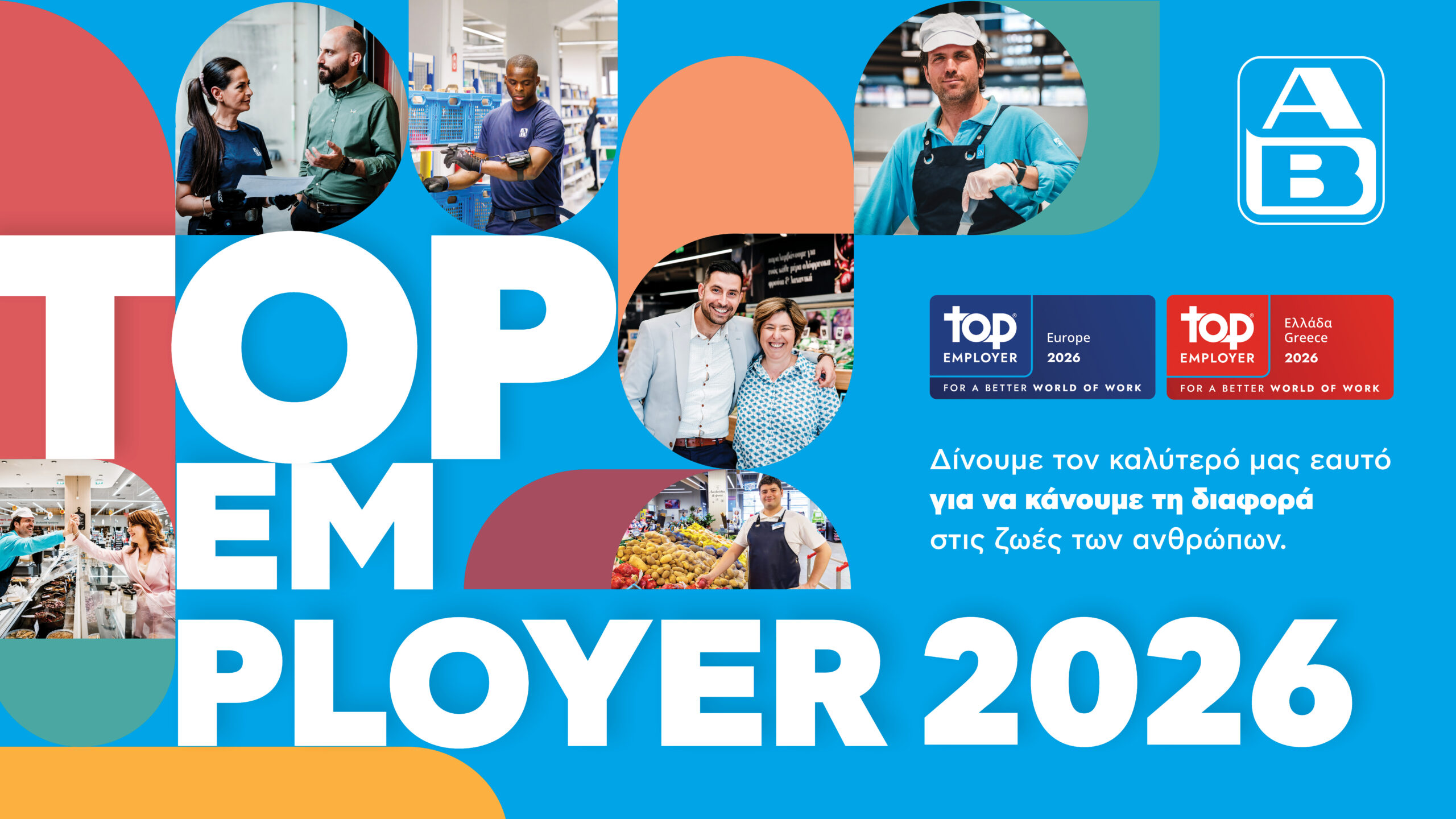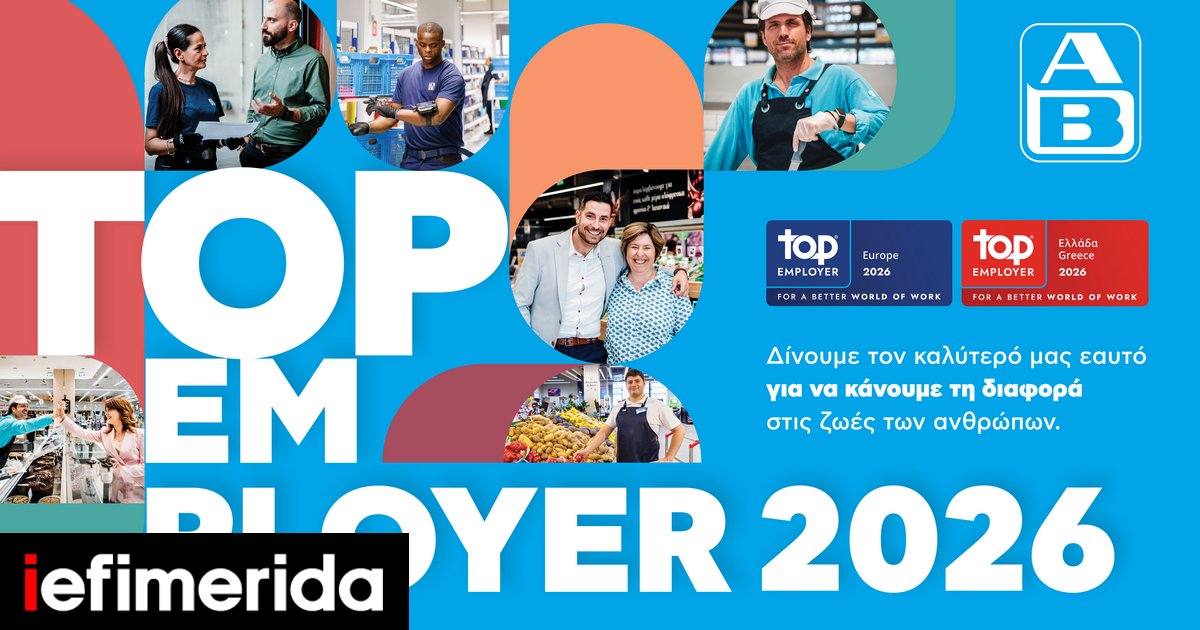 Η ΑΒ Βασιλόπουλος διακρίνεται για 3η συνεχή χρονιά ως Κορυφαίος Εργοδότης στην Ελλάδα, από το Top Employers Institute, τον διεθνώς αναγνωρισμένο οργανισμό που πιστοποιεί την αριστεία στις πρακτικές Ανθρώπινου Δυναμικού. Παράλληλα, ως μέλος του Ομίλου Ahold Delhaize, διακρίνεται ως Top Employer Europe 2026, επιβεβαιώνοντας τη δέσμευσή της για ένα σύγχρονο, υποστηρικτικό και ασφαλές εργασιακό περιβάλλον σε ευρωπαϊκό επίπεδο.