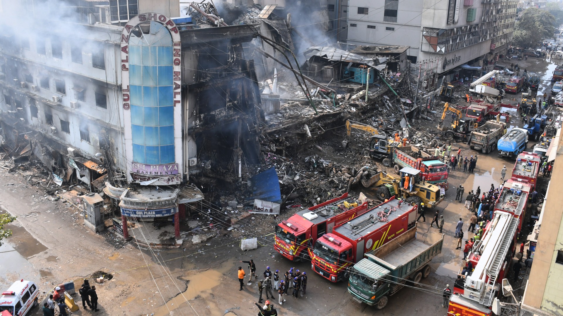 Στην καρδιά του Καράτσι, στο νότιο Πακιστάν, μια καταστροφική πυρκαγιά στο πολυώροφο εμπορικό κέντρο Gul Plaza, το Σάββατο το βράδυ,