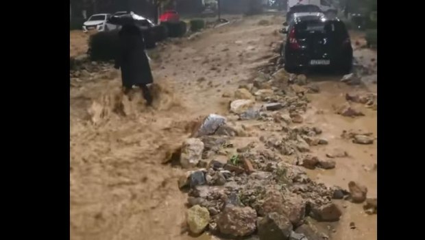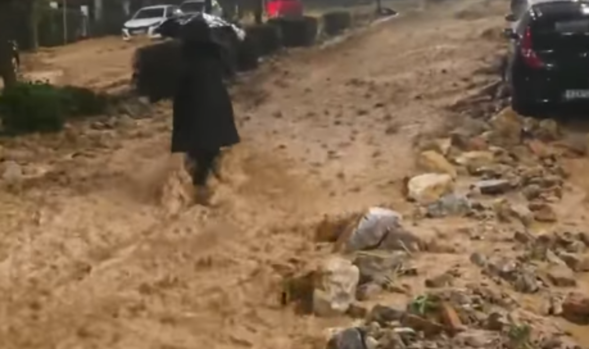 Βίντεο από την Άνω Γλυφάδα καταγράφει χαρακτηριστικές εικόνες της κατάστασης, με ορμητικά νερά να παρασύρουν αυτοκίνητα και κάδους απορριμμάτων