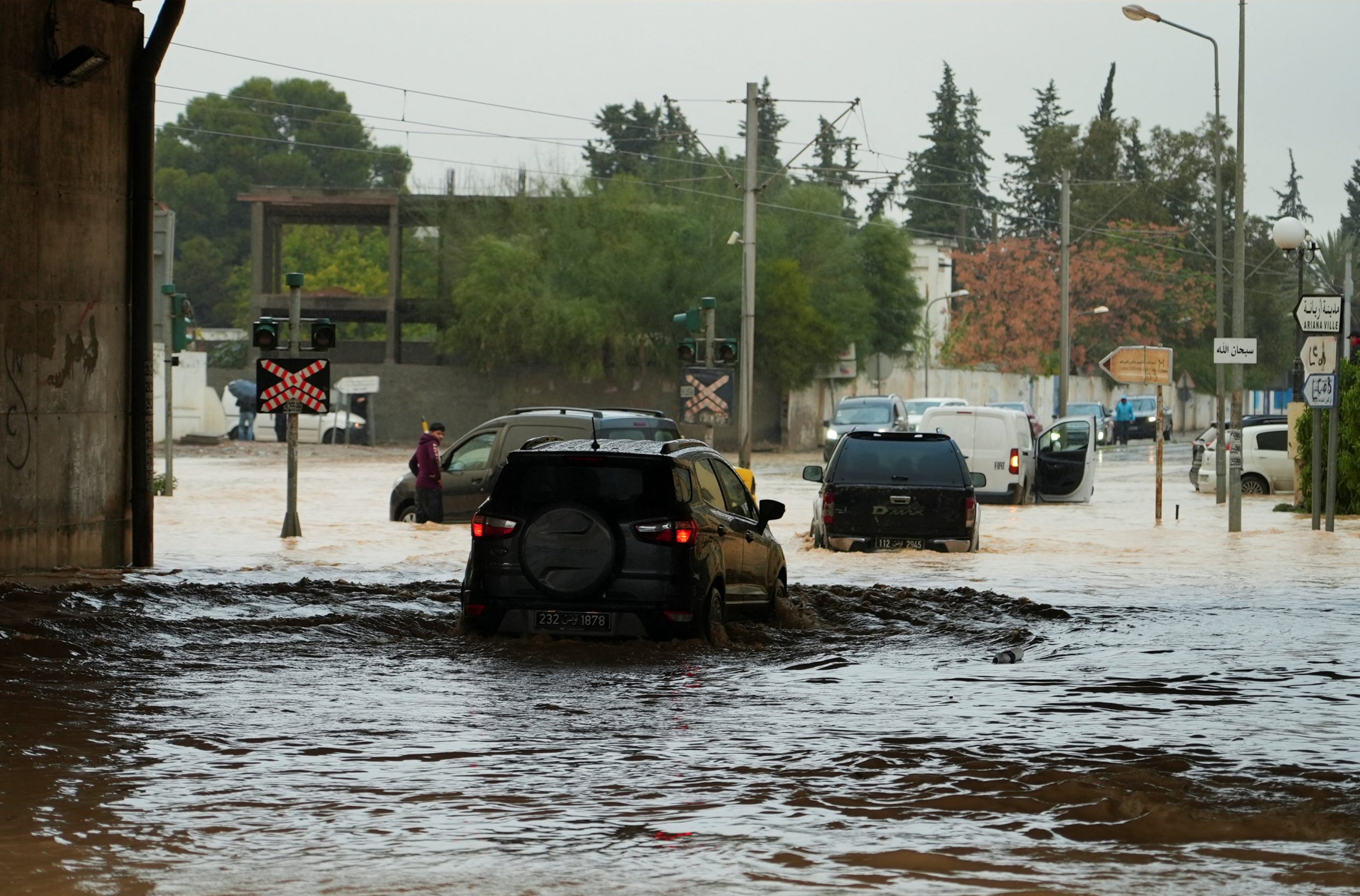 Η ασυνήθιστα σφοδρή κακοκαιρία στη βορειοανατολική Τυνησία οδήγησε σε κλείσιμο δρόμων και επηρεάζει τις μεταφορές, τα εκπαιδευτικά ιδρύματα και τις δημόσιες υπηρεσίες